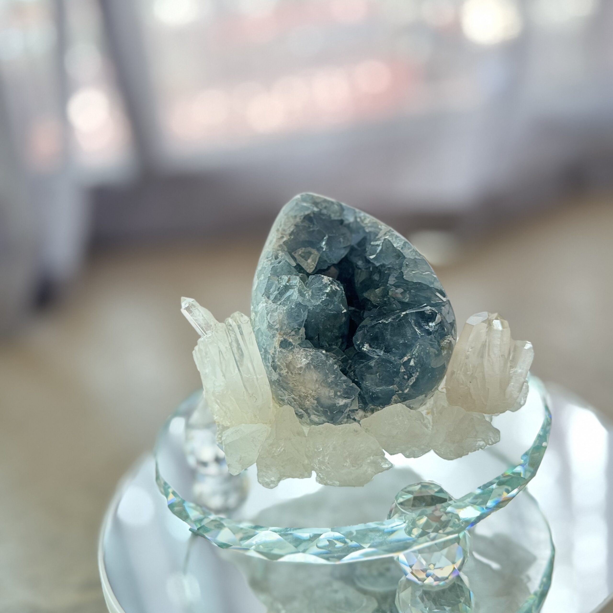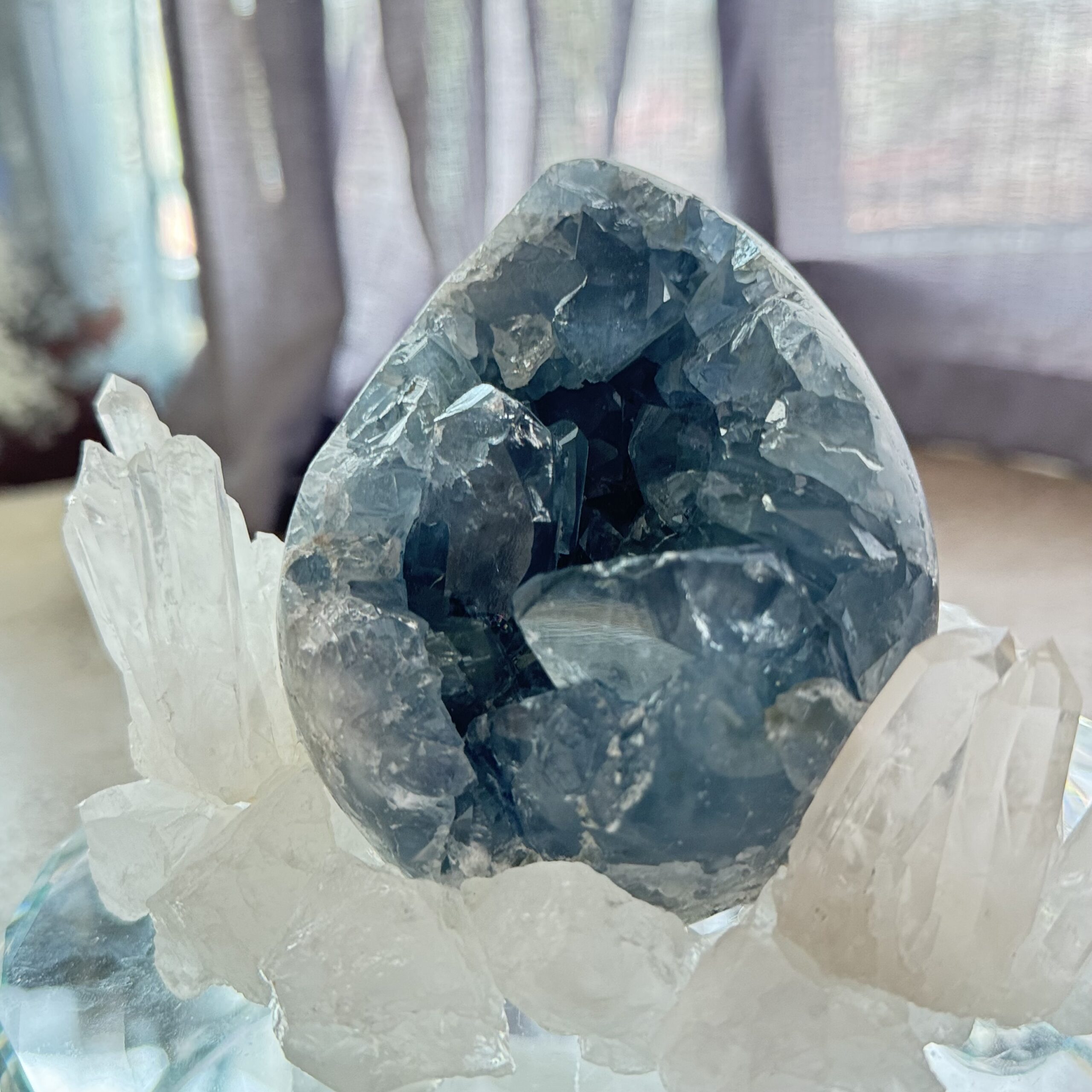 天青石水晶洞摆件 · Celestite Geode with Clear Quartz Decor